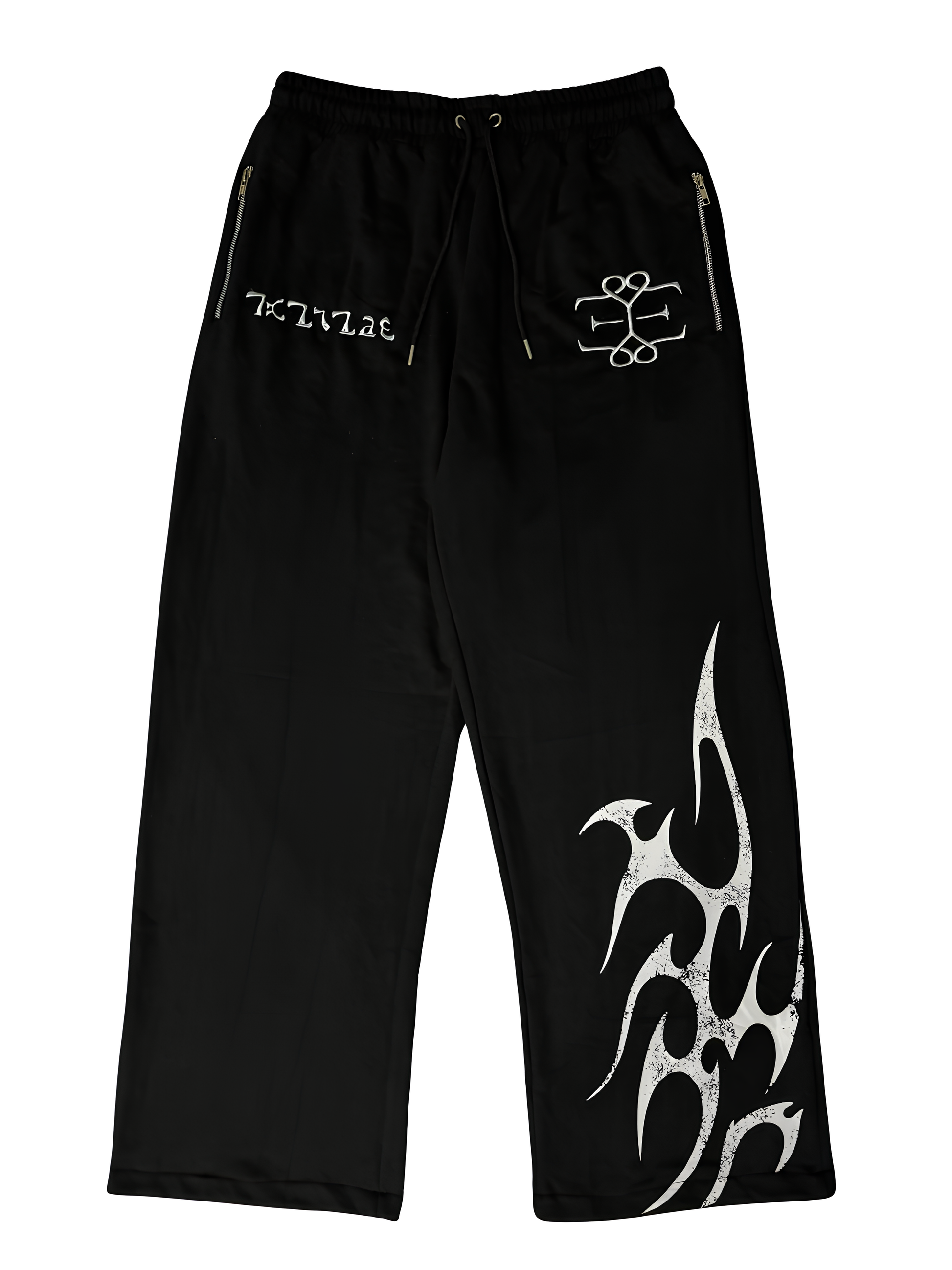 + Adorned with intricate white embroidery and a striking tribal design on one leg, every detail is crafted to perfection.