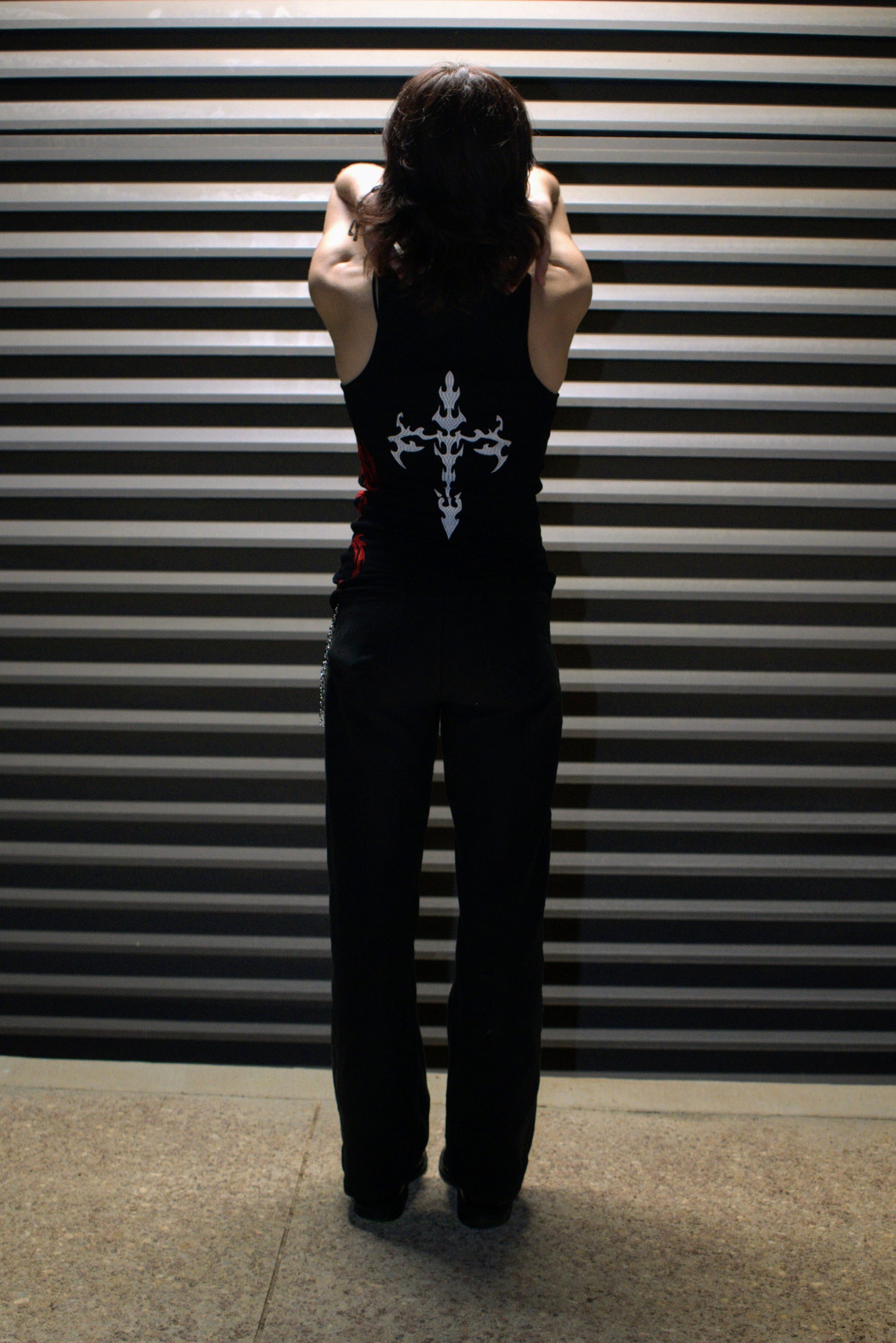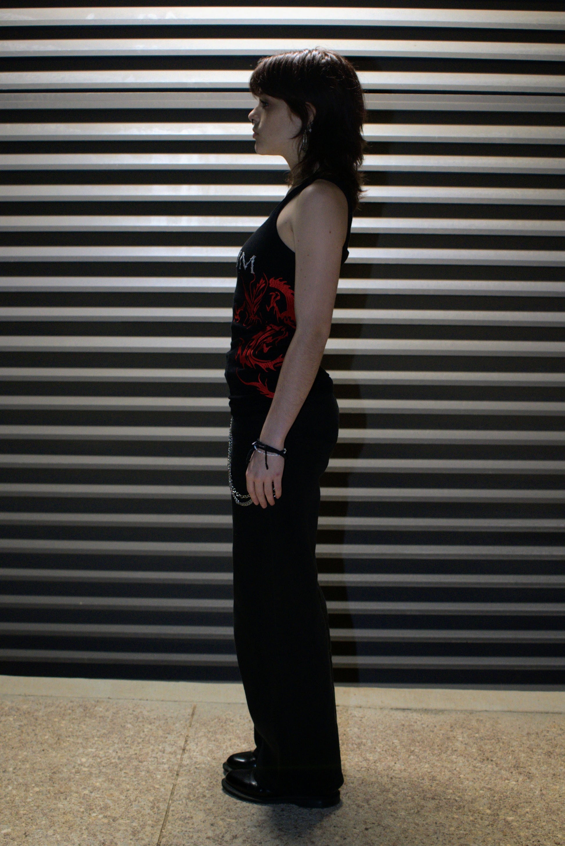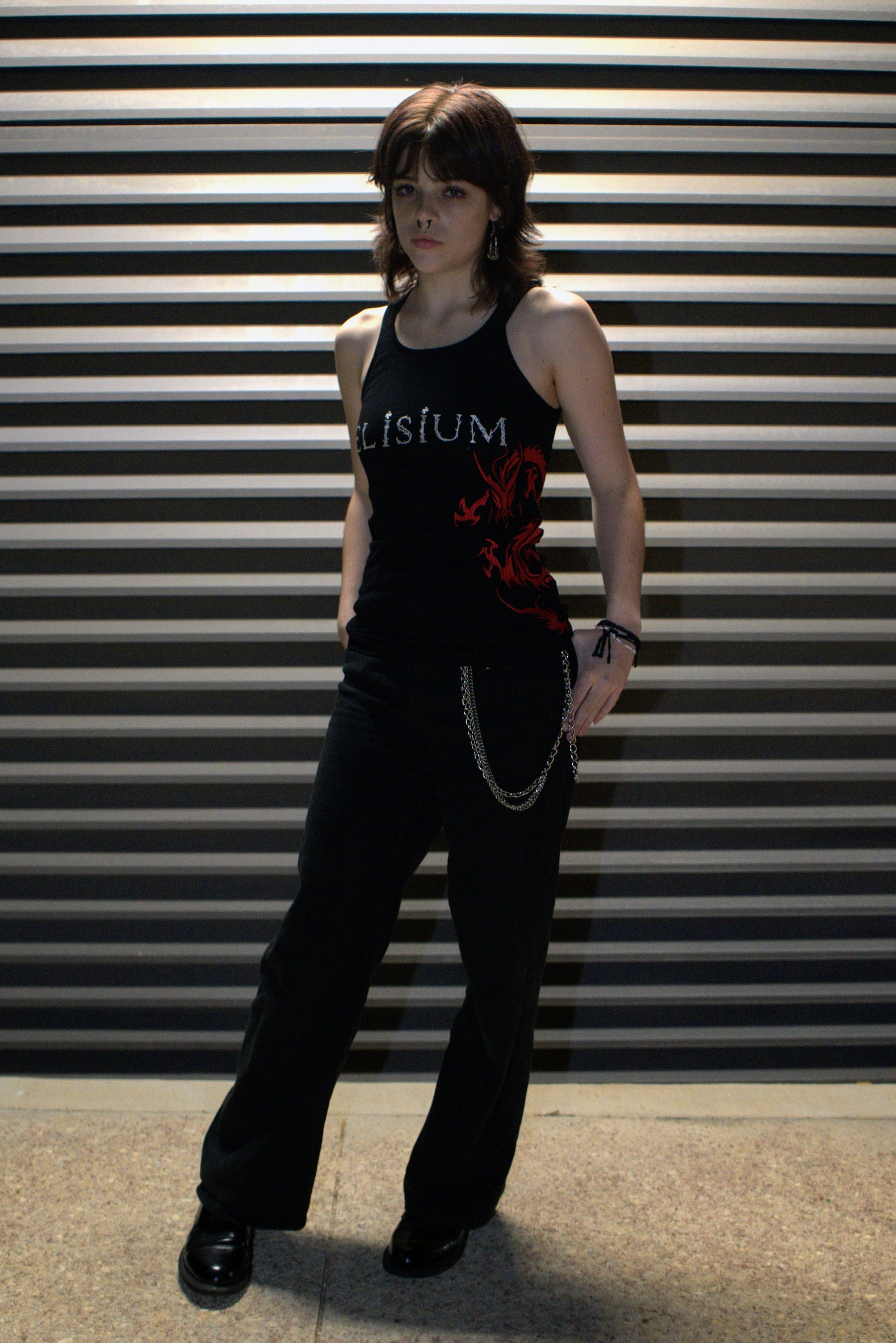 The Signature Elisium Opus 1 Dragon Tank Top in Deepest Blackย with White and Ruby Dragon Embroidery.ย